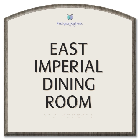 • Customize up to 4 lines of text. Suggested phrases: "Family Therapy Counseling Center," "Director of Social Services," "Dining Room & Vending Machines."