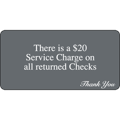 Office Policy Sign - There Is A Service Charge On All Returned Checks